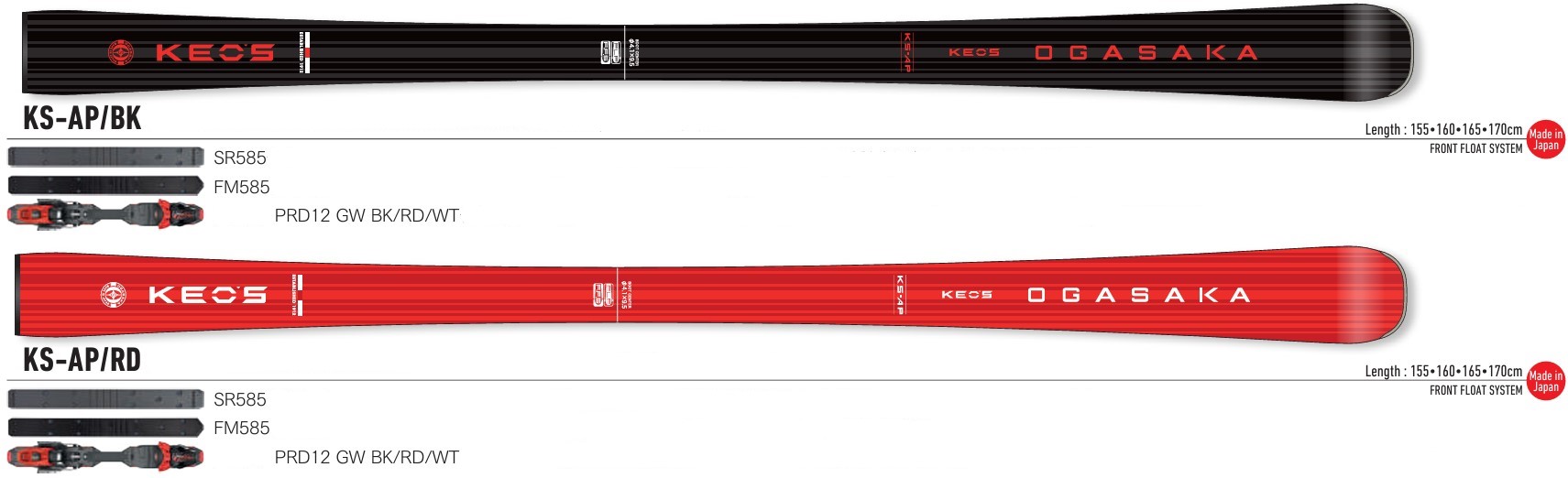| 장착 플레이트 | FM-585 스키 본래의 플렉스를 저해하지 않아 자연스러운 호를 그릴 수 있도록 배려한 Soft Type의 신형 인터페이스. Level2 수준의 일반 상급 스키어에게 충분한 선택 (높이 12.0mm, 무게 418g(1/2세트)) SR-585 단단하게 설계된 새로운 경기용/기술계 오가사카 스키판과 조화를 이루는 Hard Type의 신형 인터페이스. 경기 스키어를 비롯한 최상급 스키어에게 추천. (높이 12.5mm, 무게 436g(1/2세트)) PRD12 Multiflex Pro Base(바인딩 일체형) : 아웃쉘 대응사이즈 255~378mm, DIN 3.5~12, 1/2세트 중량 : 1,330g |
