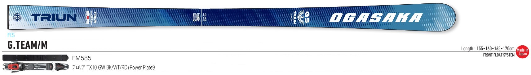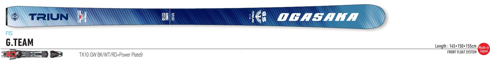 | 특징 | 마스터즈 레이스용으로 개발된 GS 모델입니다. 밸런스, 사이드 커브(3R) 변경. 플레이트의 가장 두꺼운 부분을 부츠중앙으로 이동하여 유연하고 휨이 빨라 조작성과 안정성, 주행능력이 향상되었습니다. 부드러운 라인 잡기가 가능하고 기록 단축에 공헌합니다. 또한 도입부에서 손실없이 부드럽게 턴을 시작합니다. 알파인 레이서를 위한 전용 모델. 최신 레이스 장면에 대응하기 위해 항상 정보 갱신을 실시 활주 테스트를 반복하면서 도출된 로직과 최신 기술을 융합. 승리하기 위해 계속 진화하는 오가사카의 순경기용 모델입니다. |